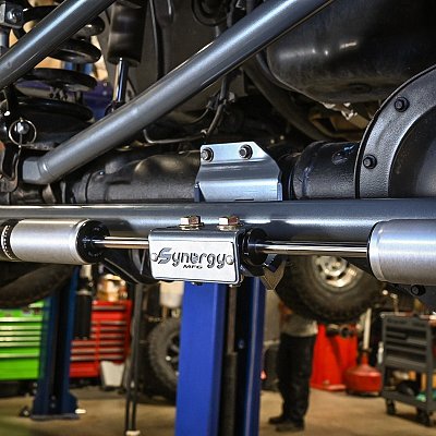 The Synergy 2014+ Ram 2500 / 3500 Dual Steering Stabilizer Kit is designed to dampen the unruly directional steering and side to side movement that larger tires tend to create. Paired with our Synergy Tuned Steering Stabilizers, this dual stabilizer kit outperforms the competition and turns heads everywhere you go! Preventing bump steer and isolating steering wheel feedback, you can both heavy haul and cruise back roads with confidence. This is an ideal upgrade for folks that are running larger wheel and tire combinations, adding additional force to your steering components. Conveniently available either as a complete kit with dual Fox Steering Stabilizers or as the bracket and clamps only. Experience next level handling and steering performance with the reinforced steel bracket and dual steering stabilizers!