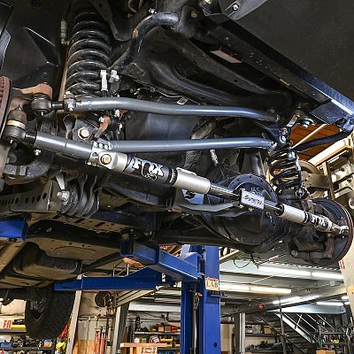 Improves vehicle handling by dampening road vibrations, neutralizing bump steer, and calming the unruly side to side movement larger wheel and tire combinations can create
