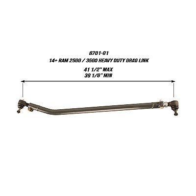 The Synergy Ram Heavy Duty Drag Link has all new design with components specific to the new radius arm Ram Truck platform. It is a direct bolt-in replacement for the stock drag link for an immediate upgrade in steering feel, stiffness, and strength. The drag link is made from high quality DOM steel tubing for maximum strength. It features a single plane tie rod end on the pitman arm side which eliminates drag link flop. You will not find a better drag link on the market!