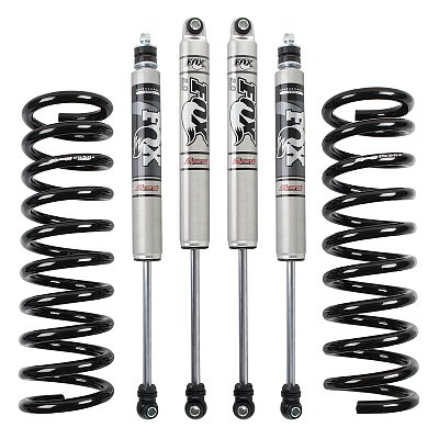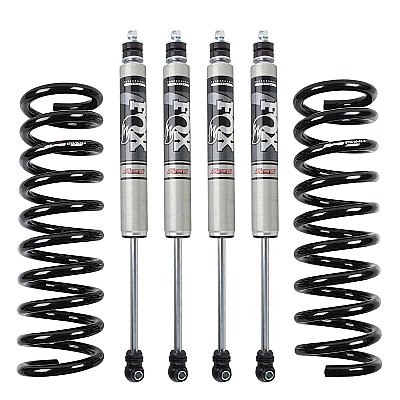 Levels the truck with a linear rate, hot wound coil spring paired with custom tuned FOX shocks