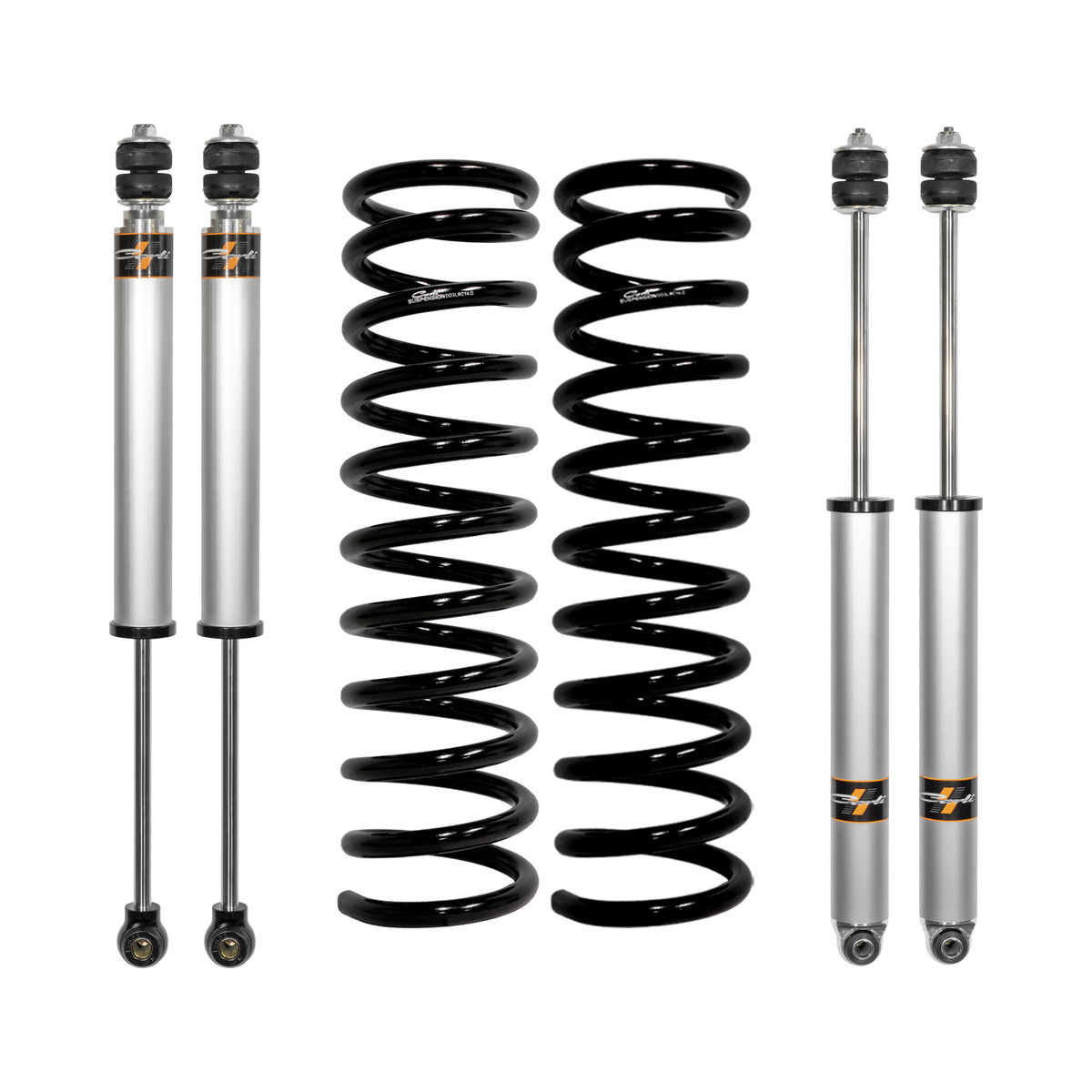 - Custom Rear Tuning: Includes custom-tuned rear shocks designed specifically to optimize the factory rear coil springs, maintaining full payload capacity.