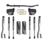 MaxTrac Suspension’s 2.5″ Lift Kit with 4-links and Vulcan Shocks is designed specifically for the 2014-2024 RAM 2500 4WD Diesel, making it an ideal choice for off-road enthusiasts seeking enhanced performance and durability. This comprehensive lift kit includes diesel coils, forged aluminum 4-links, an adjustable track bar, and front/rear Vulcan Series shocks, ensuring a smooth ride over tough terrain.