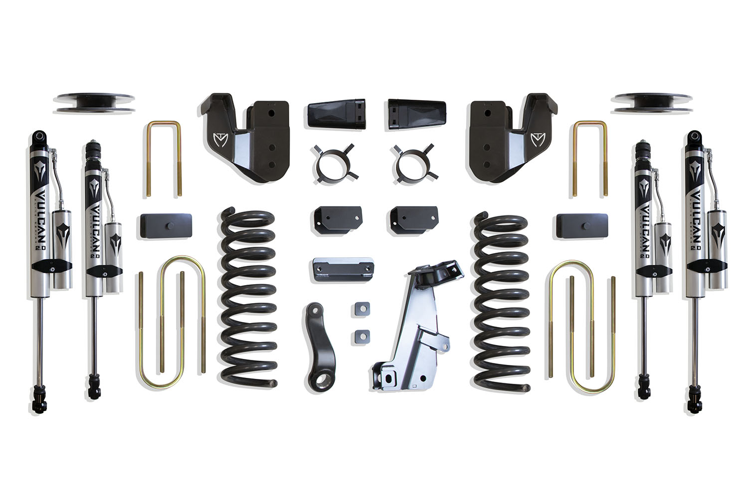 Introducing the MaxTrac 4″ Lift Kit with Vulcan Reservoir Shocks, designed specifically for the 2013-2018 RAM 3500 4WD Diesel. This comprehensive lift kit elevates your vehicle by 4 inches in the front and 1.5 inches in the rear, providing the perfect stance for off-road excursions. Engineered for off-road enthusiasts, this kit includes essential components such as diesel coils, radius arm brackets, a trac bar bracket, a pitman arm, sway bar brackets, bump stops, blocks, U-bolts, rear airbag spacers, and front/rear Vulcan series shocks.