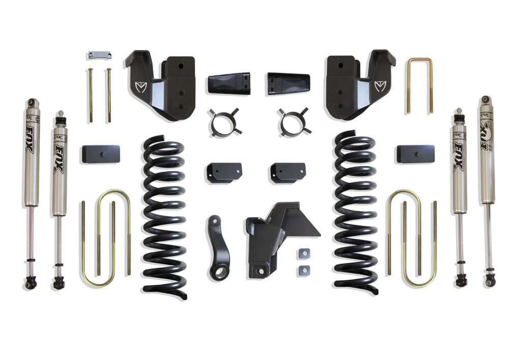 MaxTrac 8″ Lift Kit with Fox Shocks is designed specifically for off-road enthusiasts looking to elevate their 2019 to 2024 RAM 3500 4WD Diesel. This comprehensive lift kit features an impressive 8-inch lift in the front and a 5.5-inch lift in the rear, allowing you to conquer challenging terrains with style and confidence.