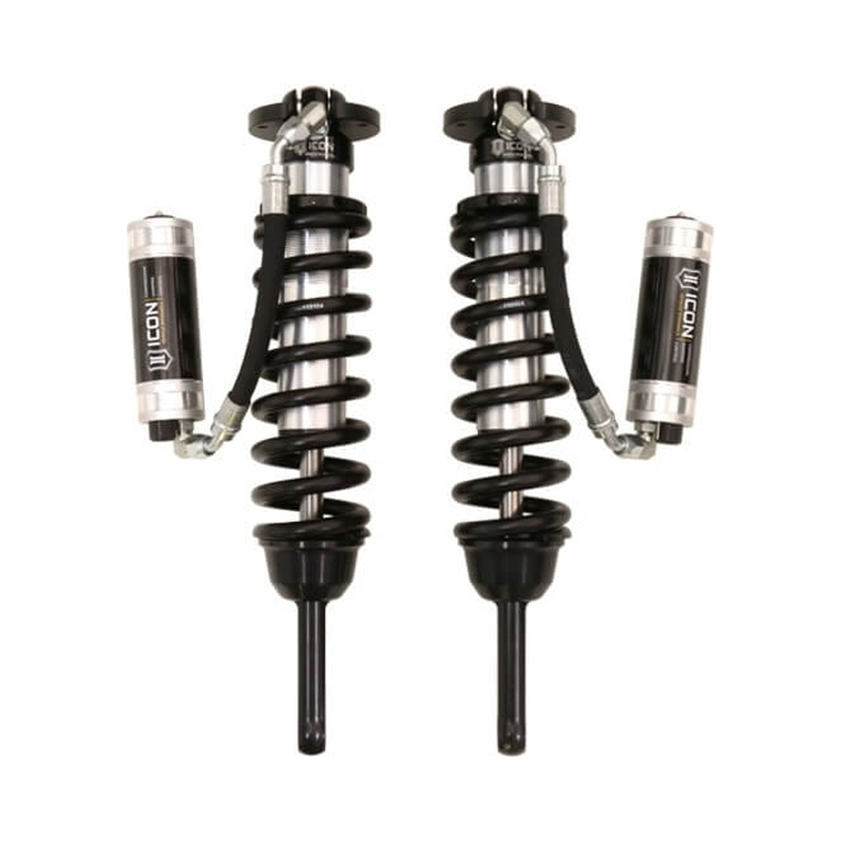 The ICON Vehicle Dynamics V.S. Series 2.5” remote reservoir coilover shocks w/ CDCV are an incredible upgrade for the front end of the 2003-2009 Toyota 4Runner. ICON’s Vehicle-specific valving provides a sport tuned feel on and off-road while offering 0-3.5” of lift height adjustability for use of larger, more aggressive wheel and tire combinations. ICON’s larger 2.5” shock body and increased piston area over stock components provides improved damping ability and outstanding ride characteristics across varying types of terrain. Remote reservoirs ensure optimum performance by increasing the duration of consistent damping regardless of situation, keeping the shocks at a cooler operating temperature during heavy use. The ICON CDC Valve upgrade is included for those desiring an easy way to tune the ride externally with 10 adjustment settings from soft to hard. When paired with ICON rear 2.0 Aluminum Series or 2.5 Series shocks, vehicle control will be balanced front to rear resulting in the best overall driving experience for your 4Runner.