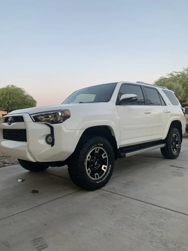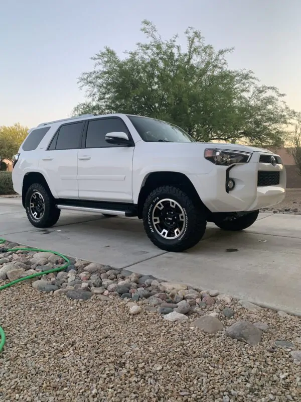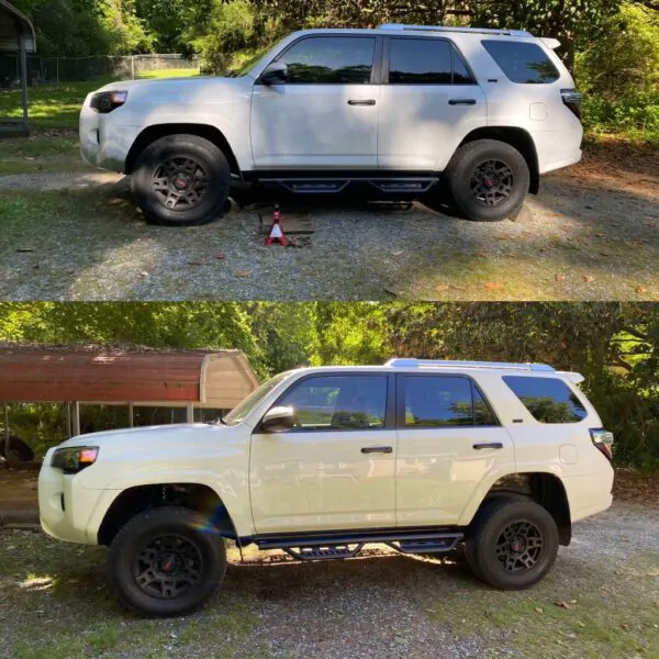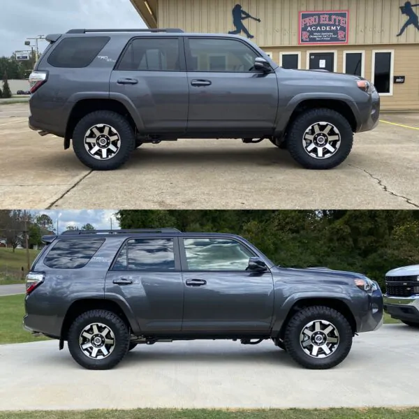 0 votesQ On the Black 4Runner in the product photos, what is the tire size? Is the rear lifted at all? If ...... Read moreA They say in their review that they set the front shocks to the 2nd clip position, which is about an inch up front and they left the rear at stock height. It looks like stock size tires, but they don't say.