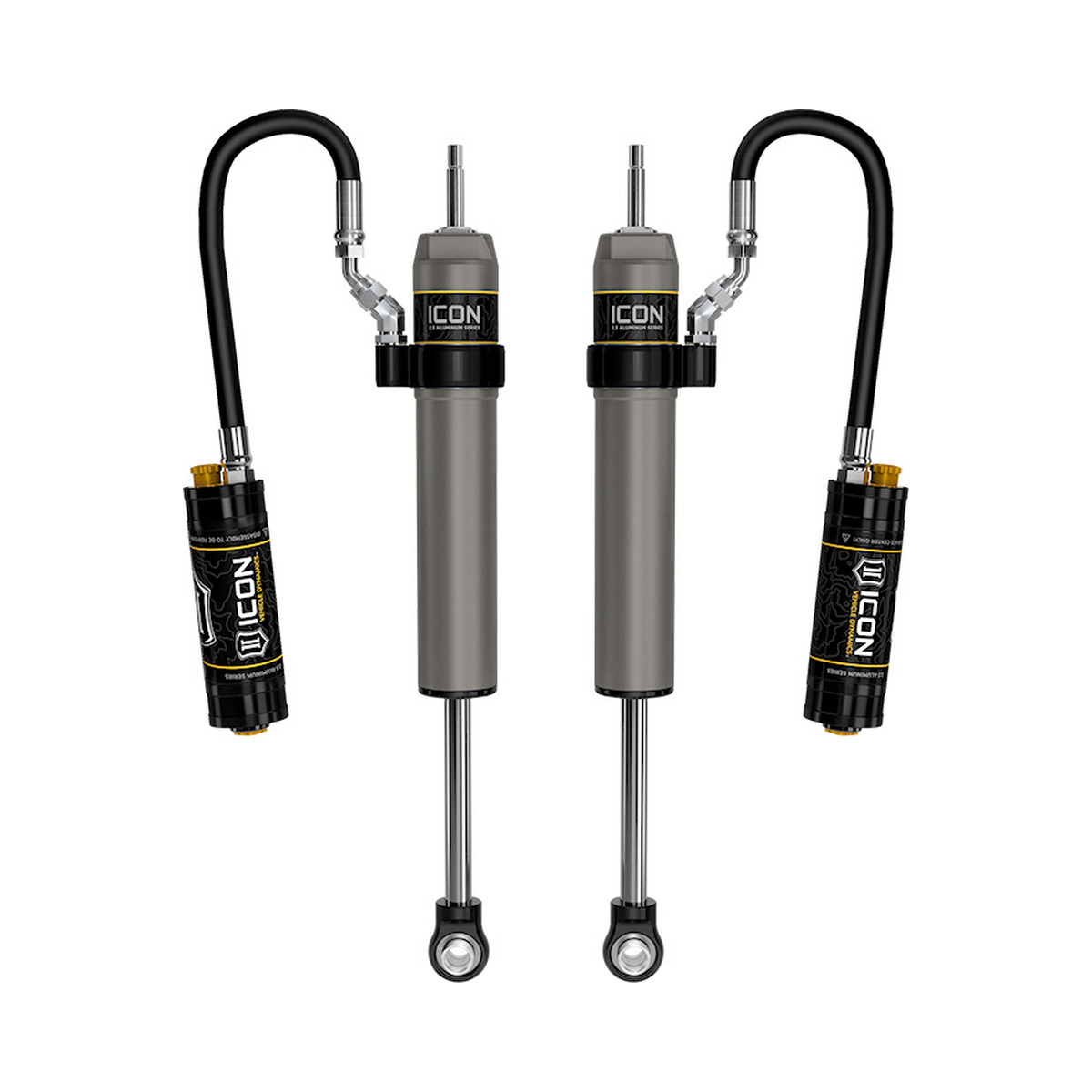 ICON Vehicle Specific (V.S.) 2.5 Aluminum Series shocks are designed and built to give your vehicle outstanding performance off-road and a smooth ride on the street. These shocks are configured specifically for each application in both length and damping tune. Like all ICON’S Shock Absorbers, V.S. 2.5 Aluminum Series shocks are 100% rebuildable and 100% revalveable. For piggyback and specific remote reservoir applications, ICON’S unique use of a 6061 billet aluminum manifold a few inches below the top cap of the shock creates an internal Bump Zone that when used creates an additional 20% of damping force. This additional force helps prevent harsh bottom outs and controls the suspension when compressing at high velocity. If you are looking for a more user defined tune, consider looking into the Compression Damping Control Valve (CDCV) shocks.