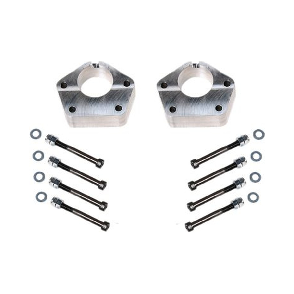 (2) 1 1/2″ Ball joint spacers add up to 2 1/2″ front lift with torsion bar adjustment & 8 mounting bolts/nuts.