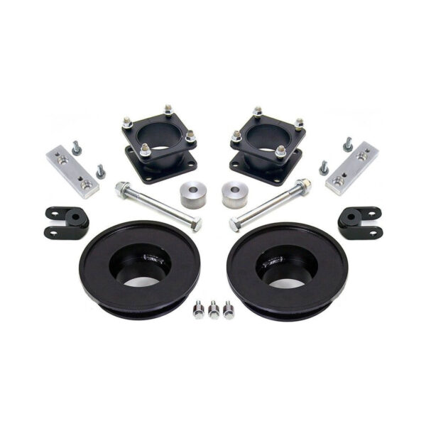 This is a complete suspension lift kit that includes powder coated steel strut extensions, front differential drop spacers, rear shock extensions, skid plate spacers and special-designed rear spring lift spacers. The SST strut extension and diff drop bracket has been designed to provide 3-inches of front suspension lift while retaining the OEM safe suspension geometry. The rear spring spacer installs between the frame and rear spring to provide a level but lifted stance. Unlike other kits, the ReadyLIFT® 3-inch suspension system requires no cutting or strut spring pre-loading and installs quickly and safely using the provided heavy-duty hardware. Quality step-by-step instructions are provided with every kit.