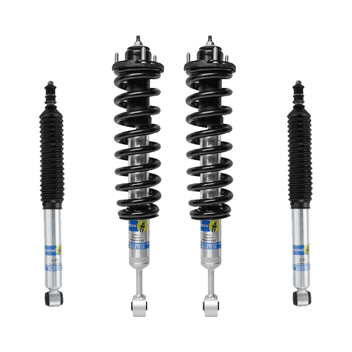- Front (pre-assembled coilovers): 2 x Bilstein 5100 ride-height-adjustable struts with your selected coils, new KYB top mounts, insulators, and all hardware