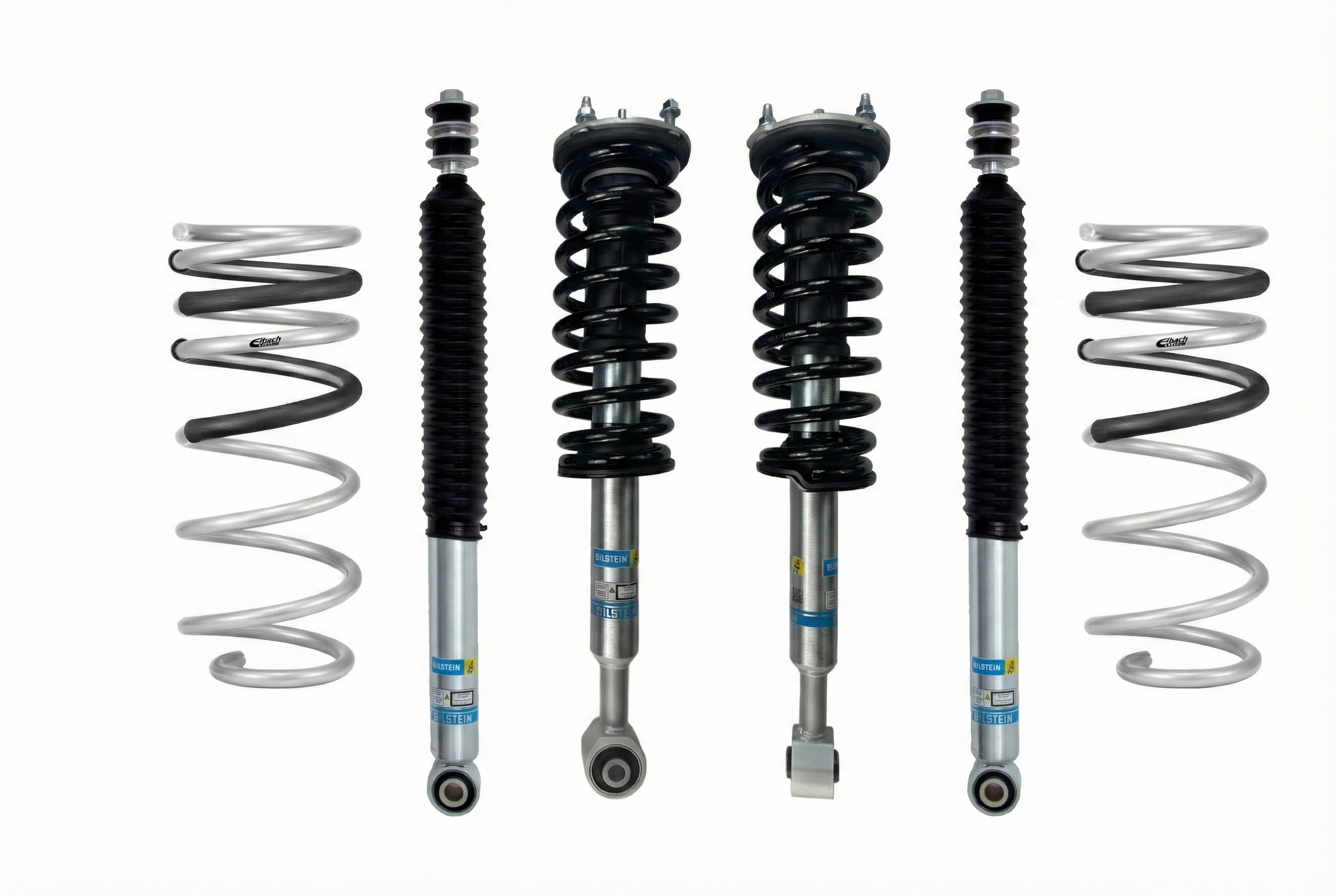 • Front: 2 x Bilstein B8 5100 coilovers pre-assembled with new OE-style springs and top mounts (shock PN 24-333207)