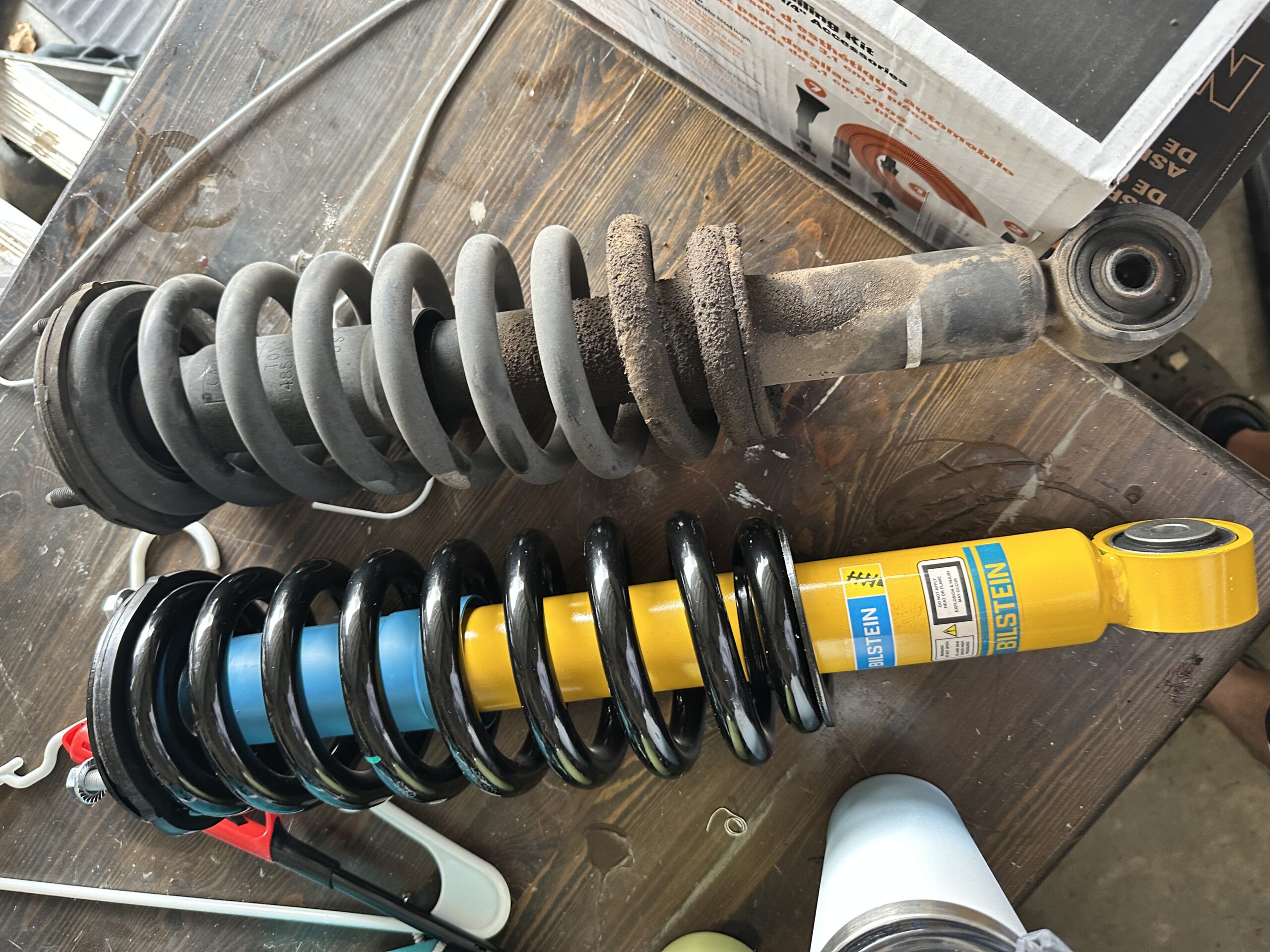 - Front (assembled coilovers): 2 x Bilstein 4600 shocks 24-185387 with OE-replacement coils, new top mounts, bushings, isolators, and hardware